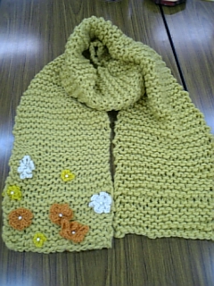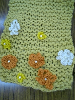 パールビーズも縫い付けてとってもかわいいマフラーになりました。