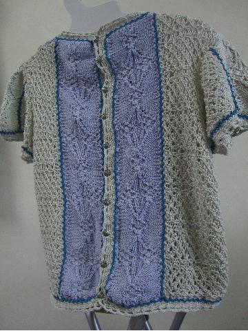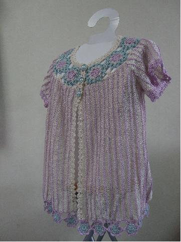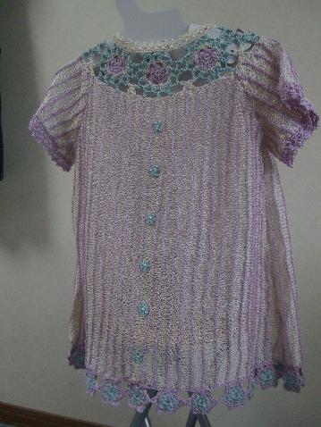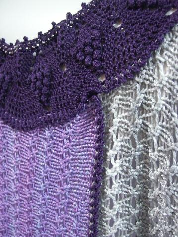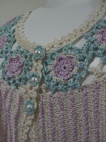 かぎ針編みで ヨークからすそまで模様がつながっています。