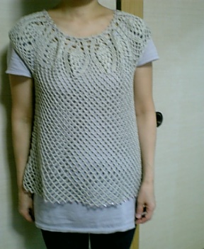 ヨーク部分のモチーフを頭入る?って大きさに並べて 身頃の脇をそれに合わせて減らしてモチーフとつないで 出来上がり!