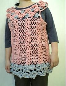 裾のモチーフから編み始め このくらいでちょうどいいかな?って思う長さで輪にして 身頃をひろい出しました。