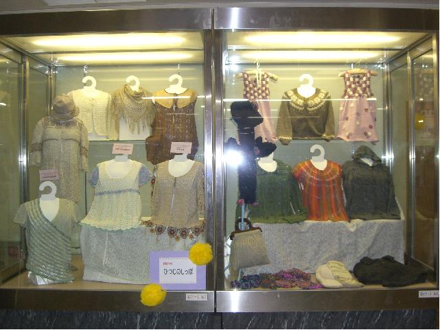 ガラスケース2台を借りて 作品を展示しました。