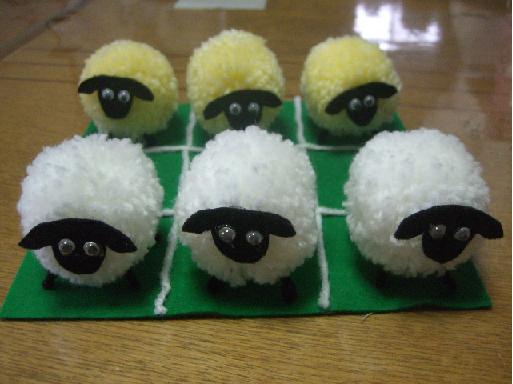 この「ひつじの3目ならべゲーム」は5月24日の青少年センター主催の「親子布工作講習会」で作ります。