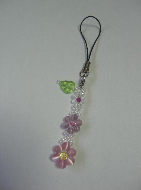 こまってしまって 第2希望のビーズをすることにしました。 1作目は キャッツアイを使った ストラップ。