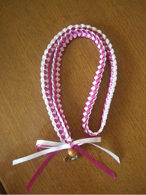 友達が ハワイアン・リボン・レイのストラップを作っていて それを 応用したら?と教えてくれました。