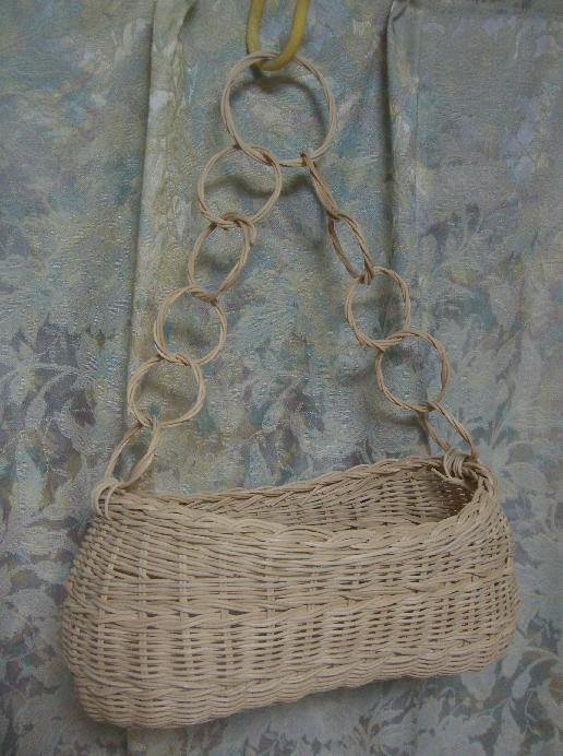 このかごは ほんとはさっきの かごバックになるはずだったんだけど たて芯の長さを切り間違えて 背の低いものしか できなくなったんです。