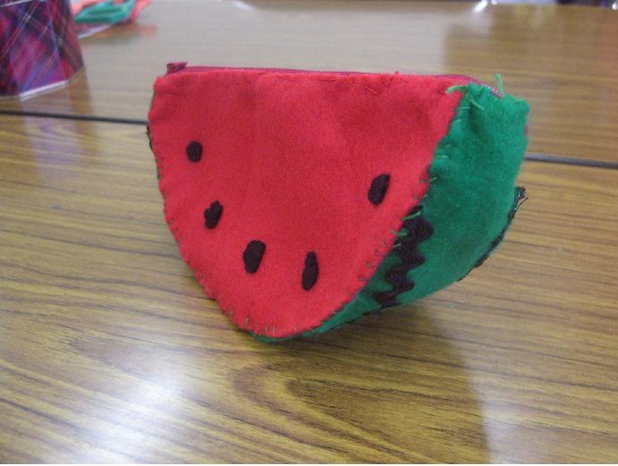 Kちゃんは2年前の夏休みにこのすいかポーチと同じものをつくっています。