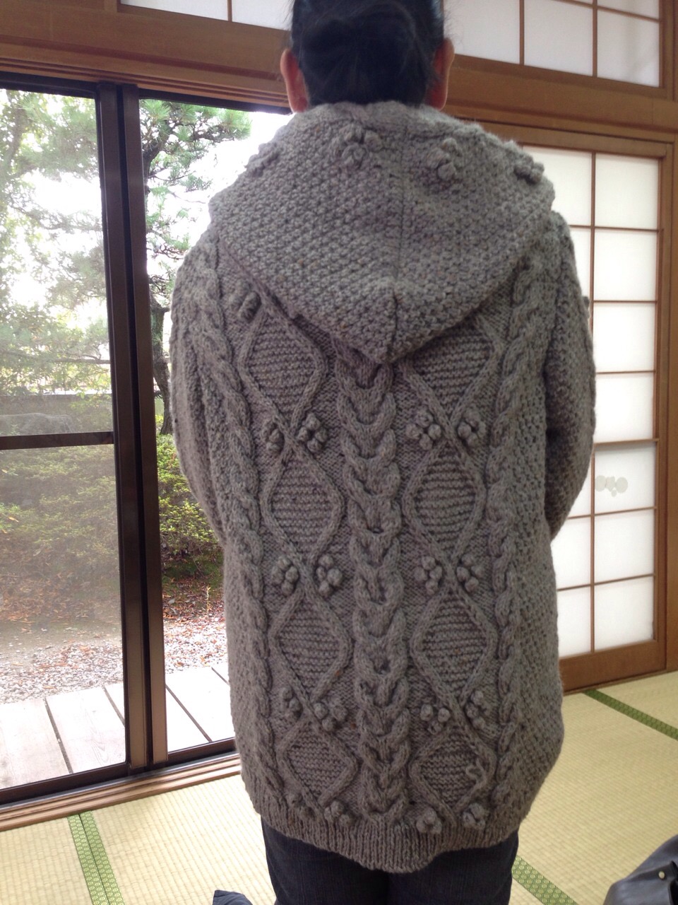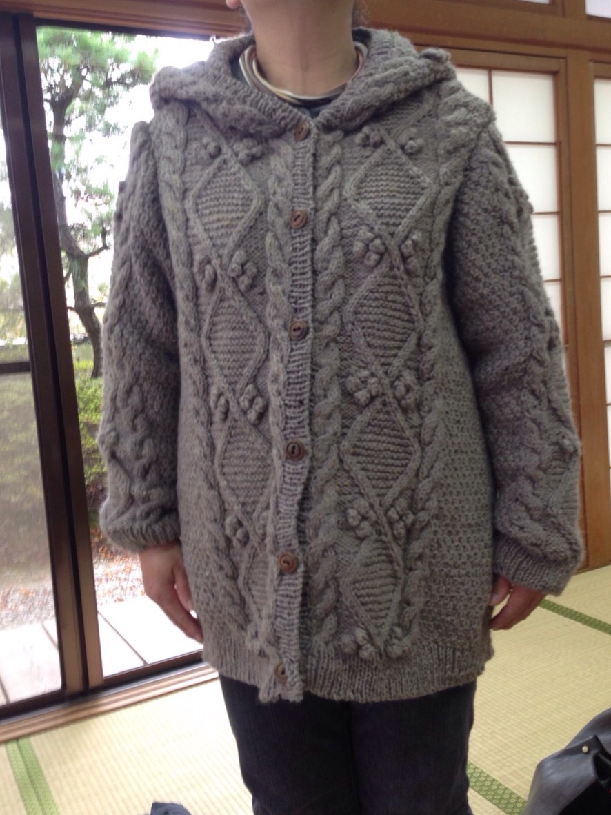 8mm針でざくざく編んだのにすっきりきれいなラインですね。