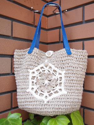 麻100%の糸でバッグを編みました。