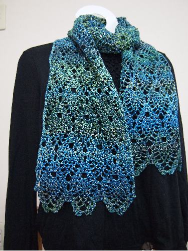 「モチーフストール ブルー&グリーン」も私が編んだもので